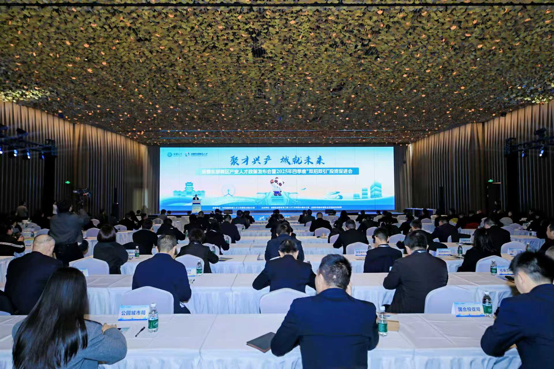 12月26日,成都东部新区产业人才政策发布会暨2025年四季度“双招双引”投资促进会举行。本次活动以“聚才兴产城就未来”为主题,重磅发布“产业人才政策八条”,启动新区人才服务呼叫中心,并开展“双招双引”重点项目签约,推动人才链、产业链、资金链、创新链协同发力。